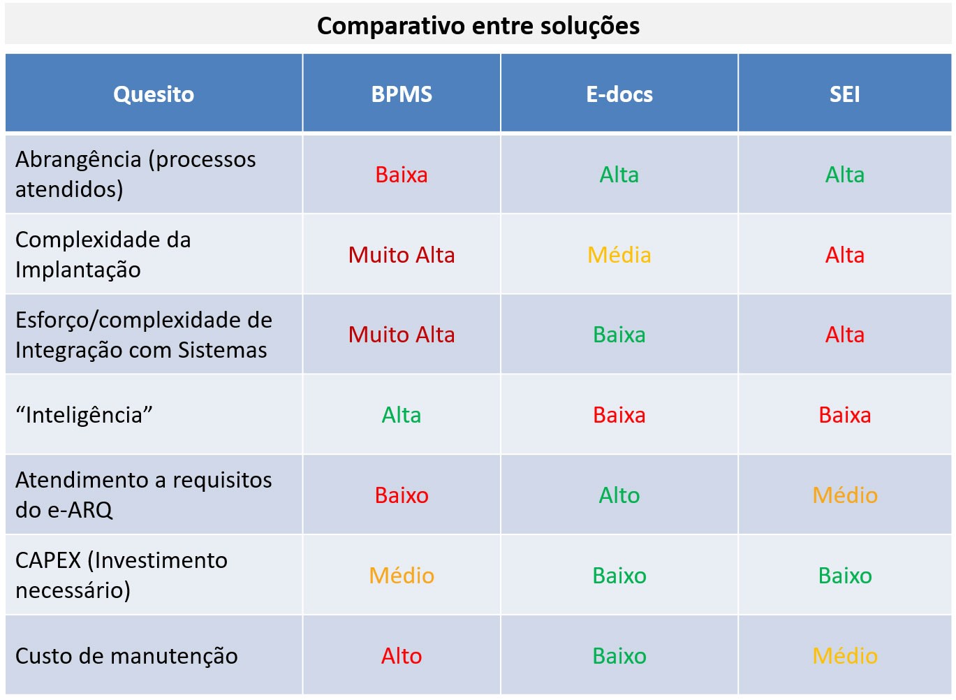 O PRODEST fez um comparativo entre as soluções disponíveis, no qual demonstra a viabilidade econômica e técnica da solução a ser implementada. Segue abaixo o comparativo.